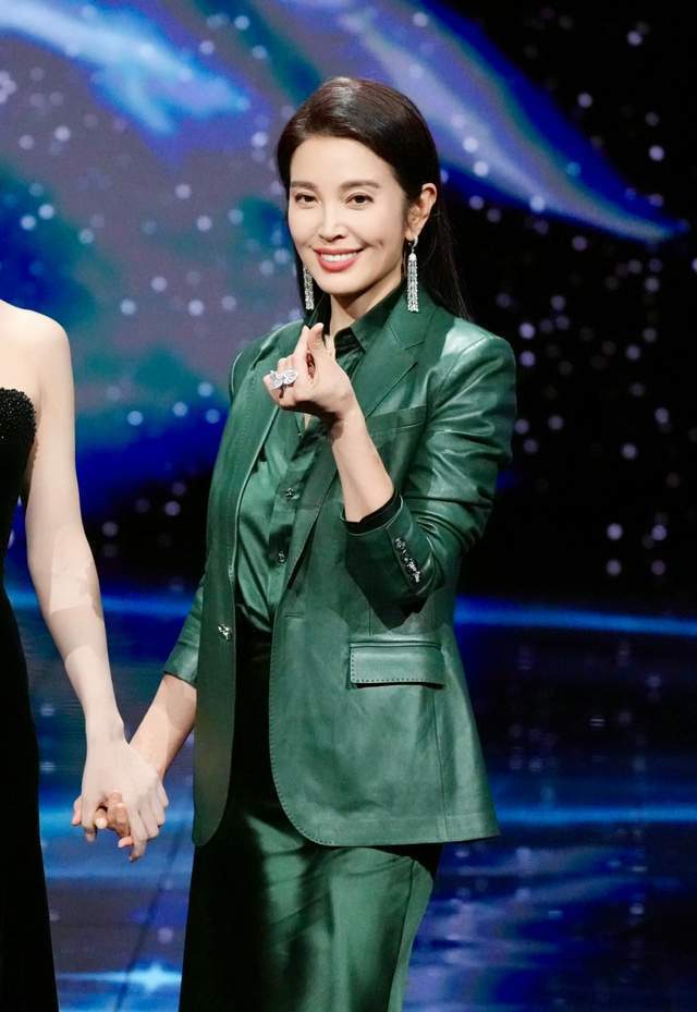 妹妹李雪一件绿色西装搭配裙子,气质同样出众,姐妹两牵手并肩而行,在现场互动亲密,姐妹情深在这一刻具象化了。